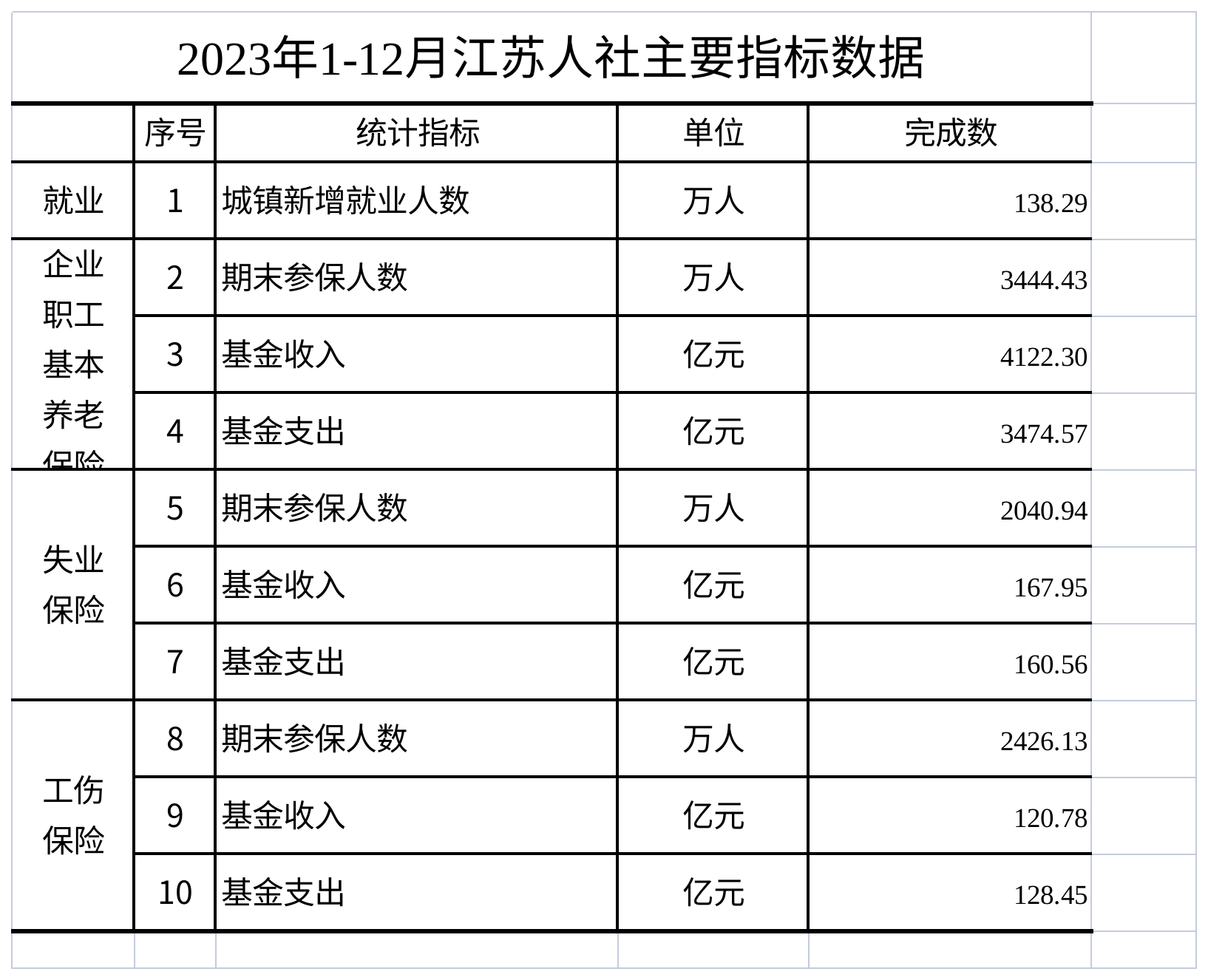 2023年1-12月江苏人社主要指标数据