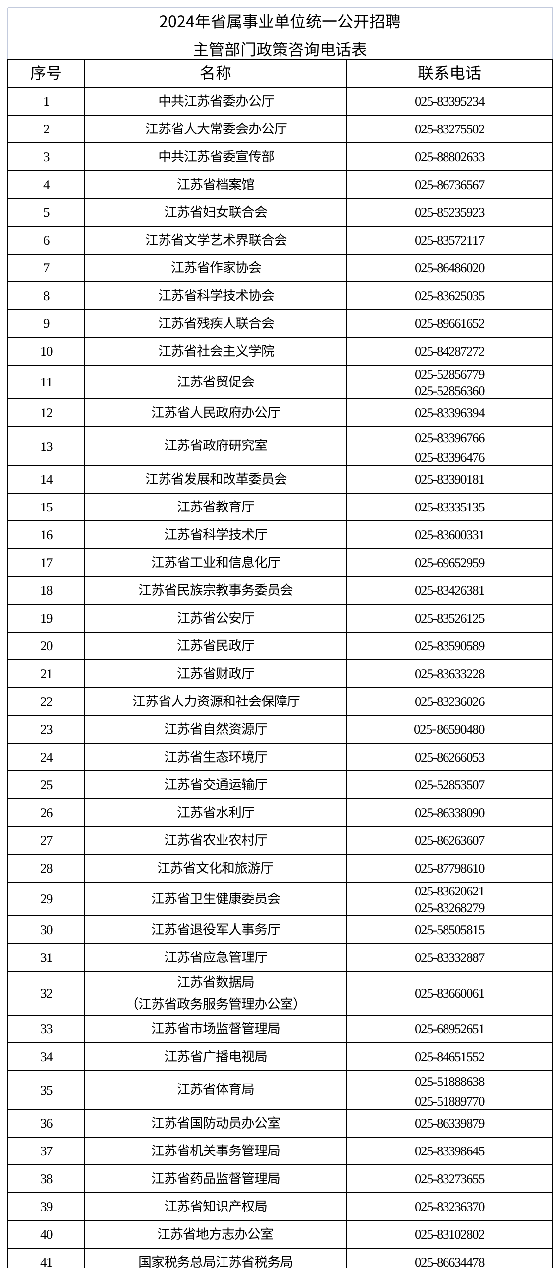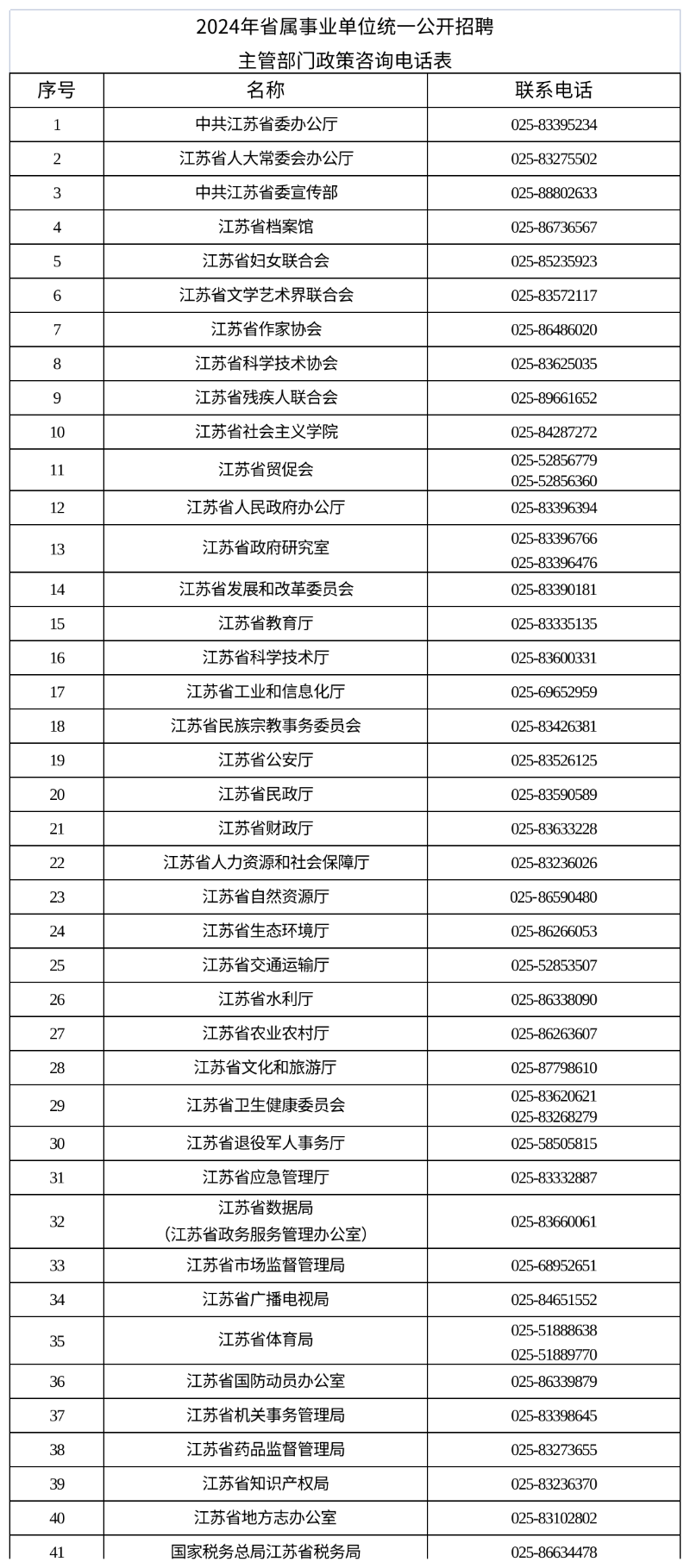 2024年省属事业单位统一公开招聘主管部门政策咨询电话表