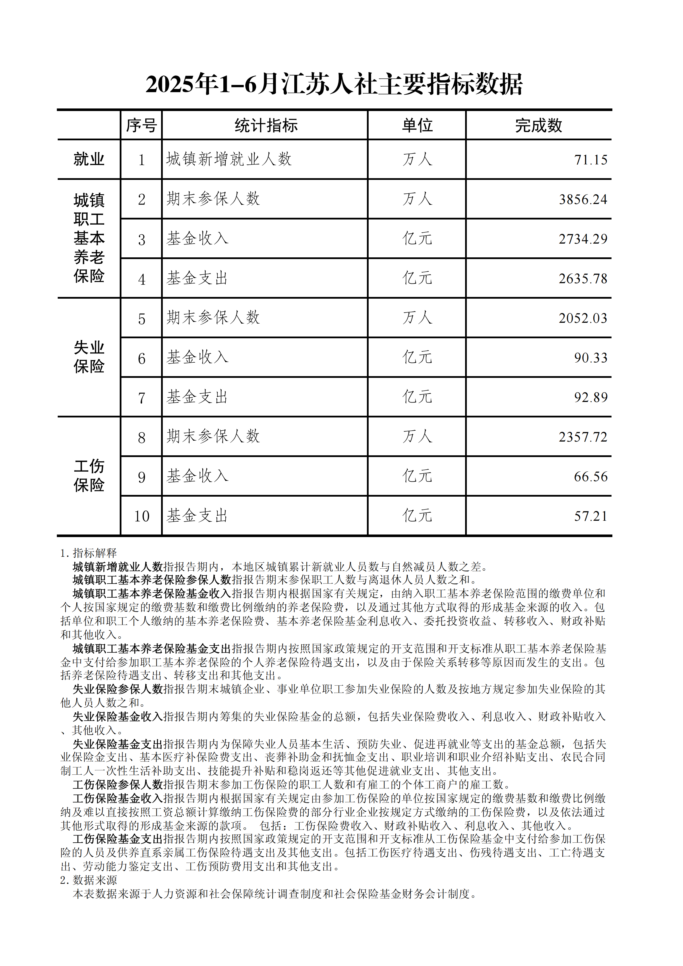 2025年1-6月江苏人社主要指标数据